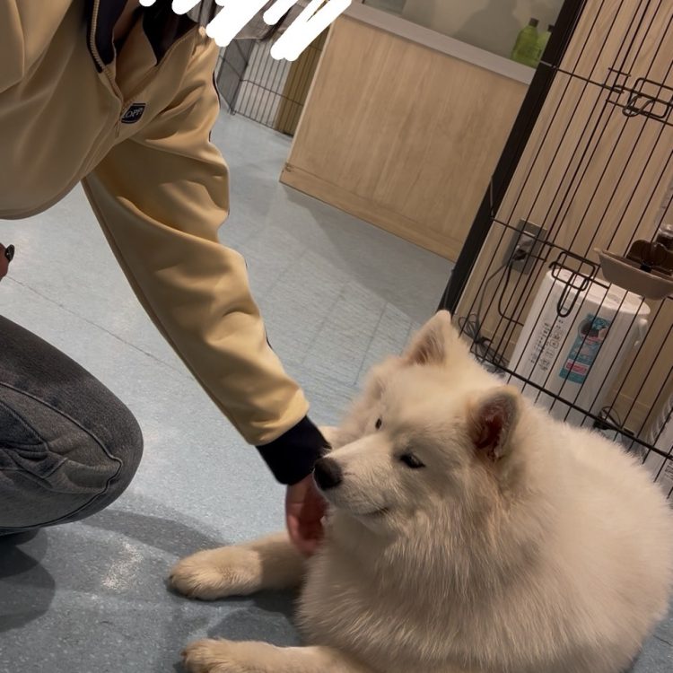 こっちはサモエドです!東京の旅行の際に訪問!芸できる子が多くて感心✨顎乗せるのが可愛すぎる…チェキも撮ってもらいました!予約しないと入られないところが多いので予約必須!