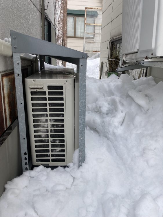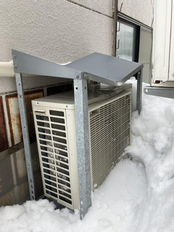会社の室外機が雪庇によって破損‼