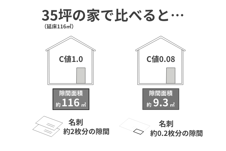 C値が1.0 cm²/m²の場合、延床面積116㎡の住宅では隙間面積は「116 cm²」です。