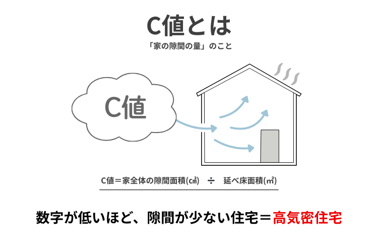 例えば、C値が1.0の場合、1㎡あたり1㎠の隙間があるということです。C値が低いほど冷暖房の効率が良く、快適な室内環境を実現できます。