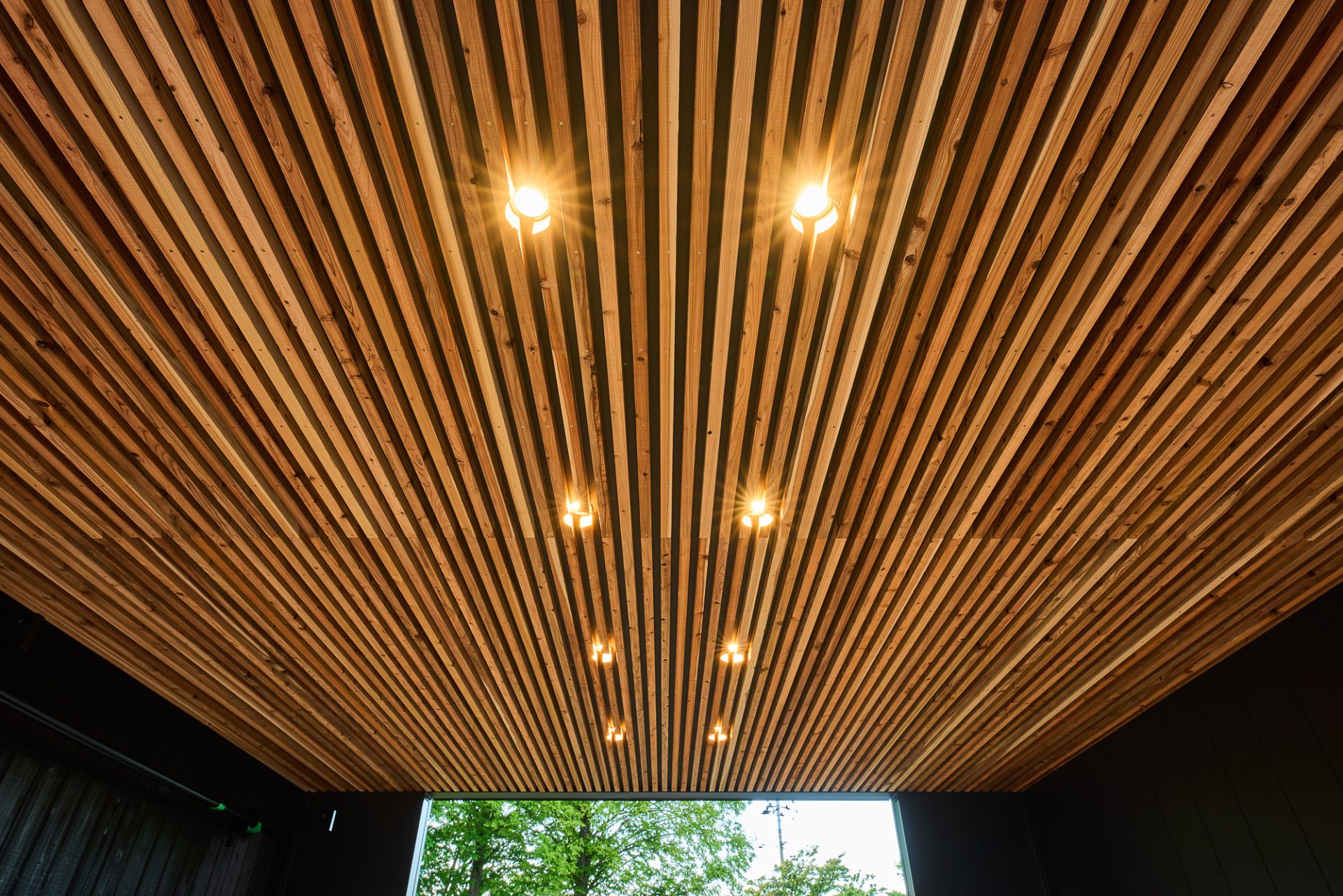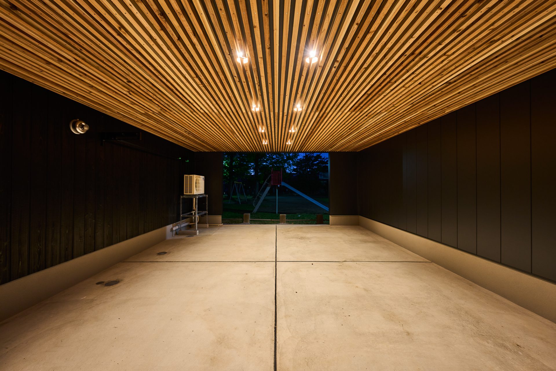 雪かき不要のガレージ。光が灯ると幻想的なガレージへ