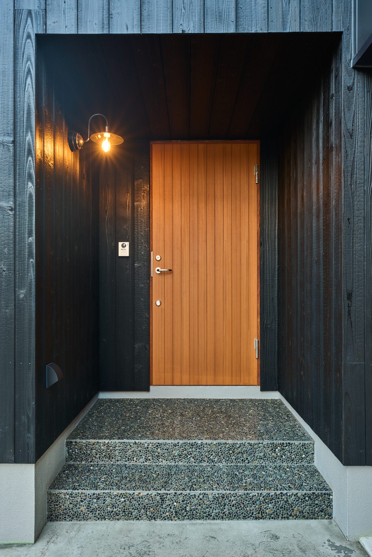 外壁材にメリット豊富な焼き杉を採用。長く住み続けられる住宅を考慮しています。