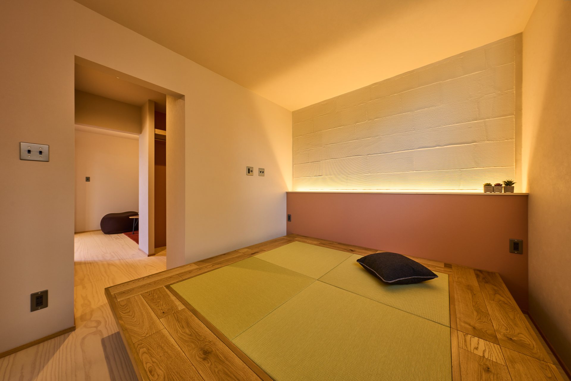 子世帯の居室。小上がりにすることで、ベッドとしても使用可能